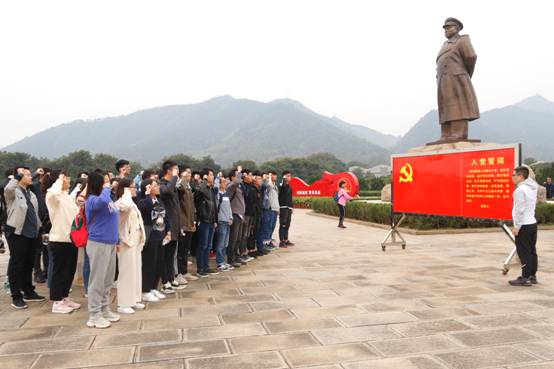 在彭德怀铜像前,全体党员同志俨然肃立,深切缅怀。他们紧握右拳高高举起,高诵入党誓词,以慷慨激昂的青年之声表明自己对党的崇高敬意和为人民服务的初心。大家认真参观了彭德怀纪念馆和故居,讲解员介绍了彭德怀元帅戎马辉煌、心系人民的一生以及为中国革命和建设事业做出的不朽功绩。“山高路远坑深,大军纵横驰奔,谁敢横刀立马,唯我彭大将军。”看着展厅里悬挂着的毛主席的手迹,大家都被元帅在危难面前挺身而出、藏在字里行间的家国情怀所感染。