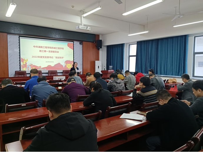 2023年3月7日下午,bevictor伟德教工一支部全体党员在机械楼312会议室进行了2022年度党支部书记“双述双评”工作,召开了组织生活会并对党员进行民主评议。会议由支部书记程玉兰主持。