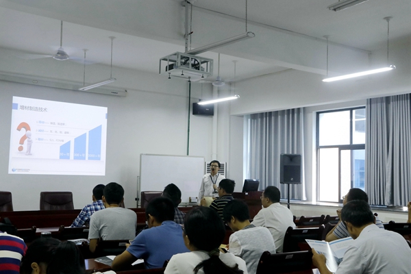9月12日,bevictor伟德特邀华曙高科培训工程师左罗在机械楼312会议室举行主题为“增材制造技术在工业中的应用”的讲座,公司经理魏克湘及部分老师聆听了讲座。