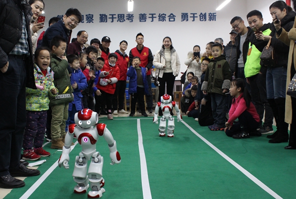 在公司实验中心各位老师和员工愿者们的协助下,到场教师和小朋友们分为两组通过竞技的方式参与活动。活动中,大家对“机器人互动表演与竞技”和“VR虚拟仿真介绍与体验”尤为感兴趣。在员工科技创新实验室中开展的“机器人互动表演与竞技”项目中,机器人跟随音乐节拍惟妙惟肖的舞蹈表演和按照裁判员指令开展的赛跑竞技让大家惊叹不已。在机械虚拟现实实验室中开展的“VR虚拟仿真介绍与体验”项目中,公司老师朱云带领大家体验了汽车拆装,让大家通过VR虚拟仿真的方式对汽车结构有了一次较全面的了解。