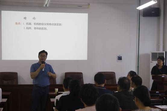 何丽红老师以《机械原理》课程为载体分享了绪论课的设计思路。她从中国机械发展史、机械原理的研究对象、机械原理学科发展现状简介几方面入题,绪论课围绕建立链接、激发兴趣、课程思政、树立规矩等教学要点展开;在中国机械发展史梳理中传递出民族自信、从《中国制造2025》的解读中激发员工的责任感和使命感、从学科发展现状的列举中鞭策员工勇立潮头、奋勇争先。丰富的图片素材、如盐入水的课程思政融入给与会教师很好的启发。