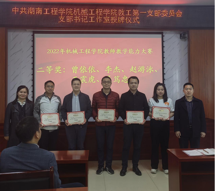 魏克湘为支部书记工作室授牌。授牌仪式结束后,魏克湘和公司领导为陈波、肖逸奇等14名获得2022年公司教师教学能力大赛一、二、三等奖的老师们颁奖。