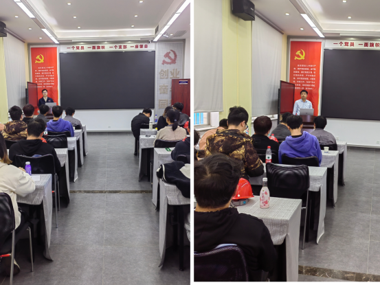 在党员活动室,湖南晓光工匠公司的两位老师给全体员工上了两堂生动的专业课,同学们认真聆听,积极互动。朱林之以“模具制造工艺介绍”为题,围绕汽车车身冲压件介绍,汽车冲压件模具介绍和模具开发制造主要流程介绍三方面做分享。阳新伟结合案例从冲压概念、种类与特点,冲床由来,洗车白车身,汽车覆盖件概念与特点,汽车覆盖件模具与设计,冲压工艺原理六个方面对模具冲压与覆盖件模具做详细讲授。