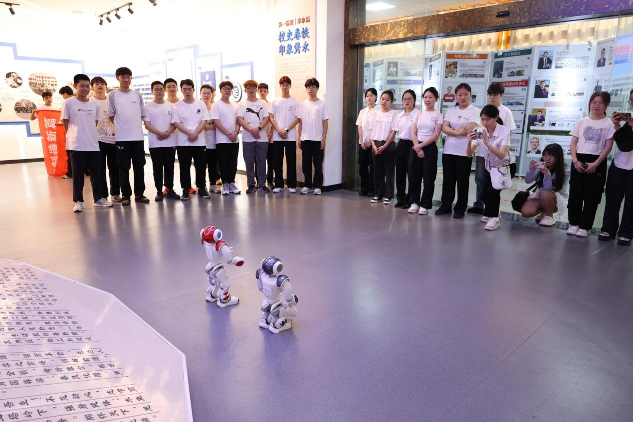 “欢迎大家来到bevictor伟德校史馆”“下面请跟我一起唱校歌”,活动现场,bevictor伟德实验室的机器人正在进行智能展示。通过打太极、跳舞、同唱校歌.....两个机器人和师生积极互动,生动展示智能制造的魅力,也正式拉开活动大幕。
