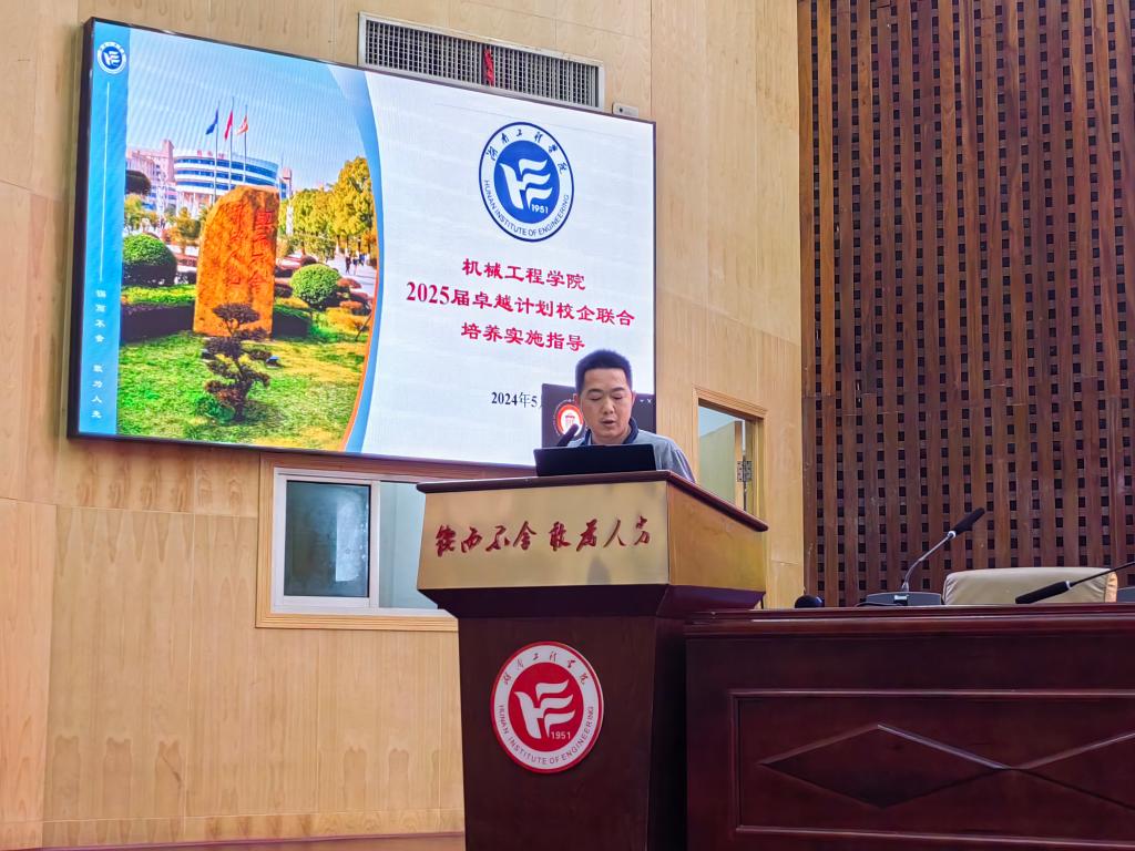 陈国强经理在指导会上从四个方面对同学们进行了切实的指导,一是介绍了“卓越计划”实施背景与目的,强调了其契合国家对于卓越工程师培养的战略需求;二是讲解了“卓越计划”校企联合培养平台为同学们提供了宝贵的成长和学习的机会;三是讲解了“卓越计划”的具体安排和要求,特别是校企联合开发课程的授课方式及其标准;四是强调了职业规划对大家的重要性,职业规划不仅关乎个人的未来发展和职业成就,更是对自己能力和兴趣的一次全面审视和树立,大家务必对校企双选会予以重视。最后,陈国强经理强调了在企业联合培养过程中需要注意的事项,在企学习中要加强与校、企指导老师的沟通,同学们要充分利用在企平台培养机会,主动学习和思考,不断提升自己的专业素养和实践能力,也要求同学们要严格遵守企业规定和纪律要求,认真履行学习职责。