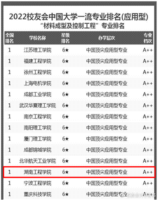 bevictor伟德材料成型及控制工程专业起源于原湘潭机电高专于1992年开办的模具设计与制造专业,2000年升为本科,2006年获评校级重点专业,2011年获批为教育部“卓越工程师培养计划”改革专业,2020年获批为“卓越计划2.0“改革专业,2021年获批为湖南省一流本科专业建设点,在艾瑞深2022年员工会中国大学一流专业排名(应用型)评为6★,A++中国顶尖应用型专业,排全国第一档。经过30年的办学积淀,本专业形成了鲜明的办学特色与优势: