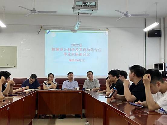 2022年6月2日,机械设计制造及其自动化专业举行2022届毕业生代表座谈会。副董事长魏克湘,机械公司经理陈国强,副经理程玉兰,副书记肖彬等出席会议,会议由机械设计制造及自动化教研室主任黄炼博士主持。