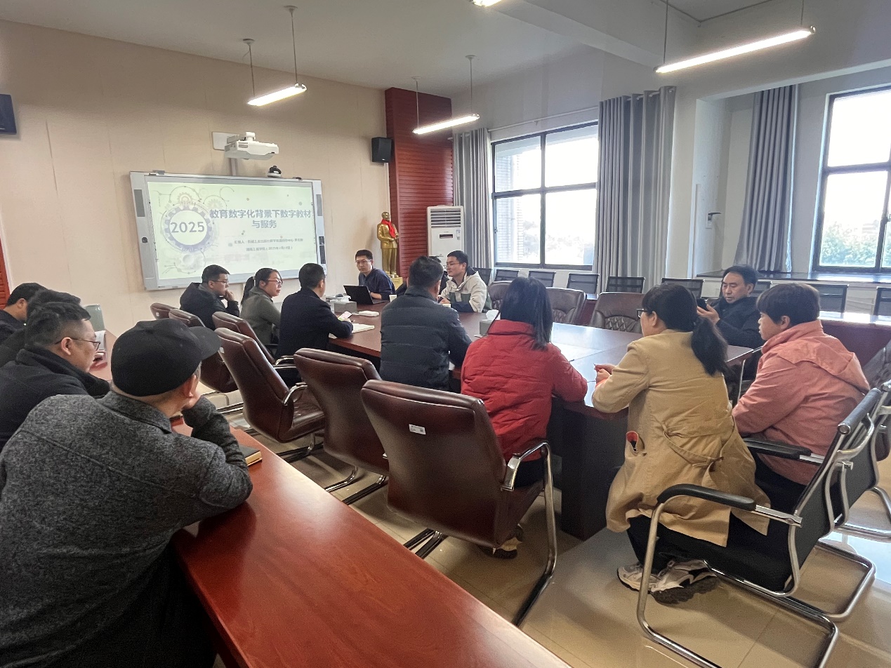 在研讨环节,与会人员聚焦数字教材建设的关键问题展开深入交流。陈国强就数字教材与纸质教材的推广差异、学习笔记数据存储、师生使用适应性差异及电子产品对视力的影响等现实议题与出版社专家交换意见。程玉兰则从应用视角切入,对比分析两类教材的优劣势,探讨数字教材发展趋势及师生使用痛点,强调技术赋能与教学需求深度融合的重要性。齐志刚积极回应讨论,并表示机械工业出版社愿意与公司教材出版展开积极合作。